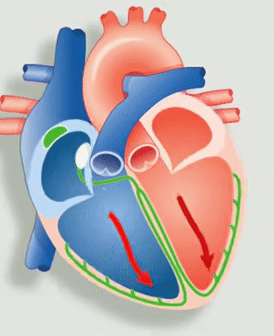 The chambers at the top of the heart are the right and left atriums. The ones in the bottom are the right and left ventricles.